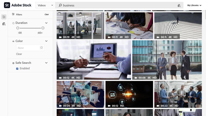 The selection and quality of video content offered by Adobe Stock are impressive. All the same, this is reflected in the price, especially if you need 4K quality. When using our keywords and phrases, web hosting returned only a few thousand video results, whereas business yielded upwards of 2 million.