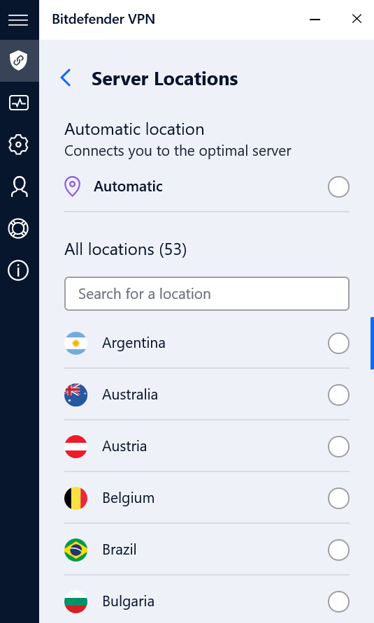 You'll also need to make your choice without additional information about the server's latency or performance. In this area, Bitdefender VPN offers the basics, but not much more.