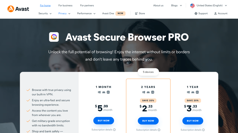 Avast is famous for its antivirus programs and firewalls, with Avast Secure Browser Pro being its contribution to the VPN browser market segment. This is built around Avast SecureLine VPN. In addition, Avast's premium VPN browser offers a number of useful features that further enhance your security.