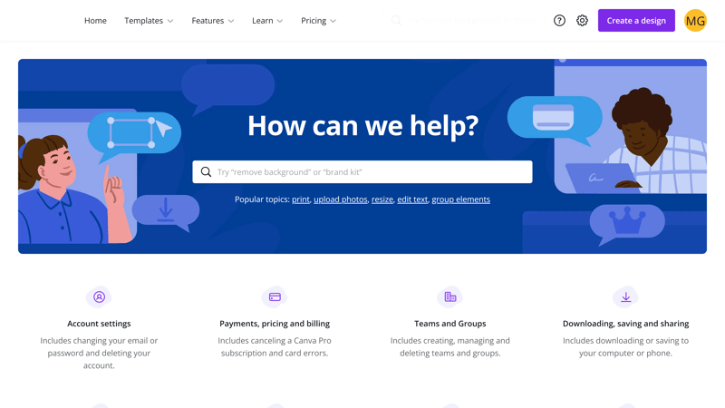 Canva's help center provides step-by-step guides, complete with screenshots and useful links.