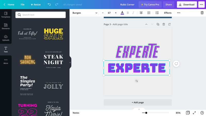 Generally speaking, Canva's editor made a favorable impression on us owing to its intuitive drag-and-drop functionality. It's possible to directly select elements, and move, copy, delete, enlarge, minimize, or rotate them at will. You can also change their color scheme.
