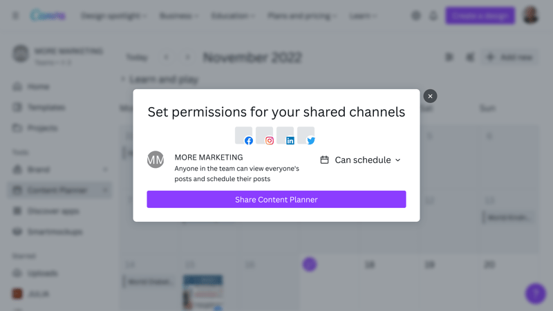 Canva Content Planner: Never forget a meeting or appoint again and make sure that your posts and designs go live exactly when you want them to.