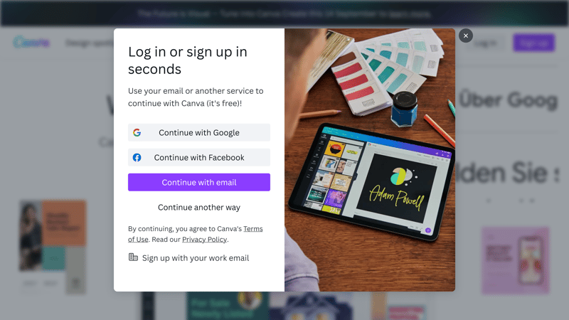 In order to use Canva, you'll need an account. Thankfully, setting one up is quick and easy.