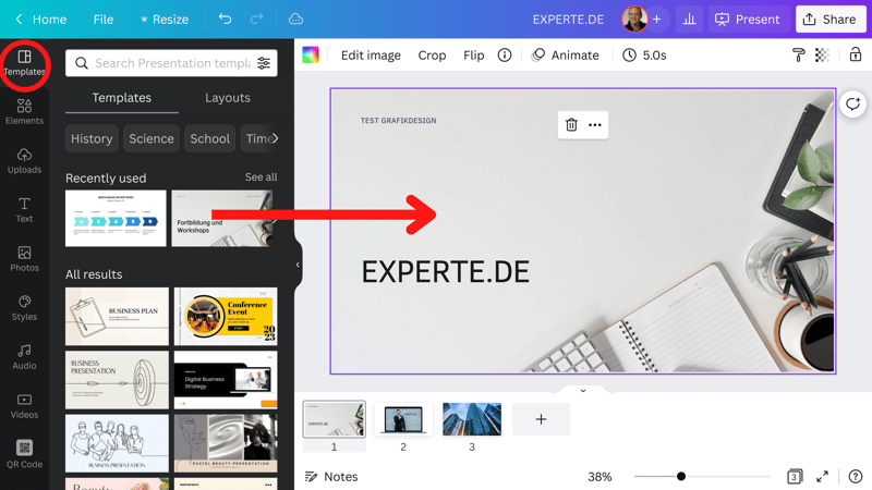 Thanks to the numerous animations which can be added to graphs or slides, even the dryest topic will get a boost. One of Canva's advantages in this regard is that you'll be able to see a preview of the animation directly in the platform's preview.
