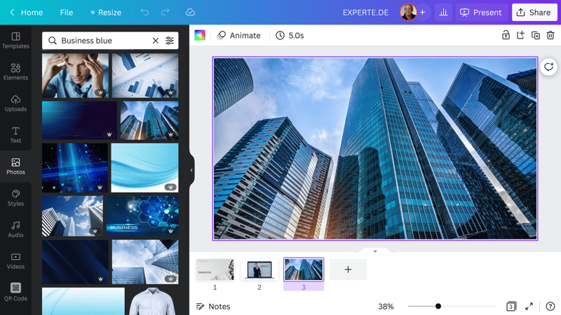 The platform's collection of elements is augmented by frames, patterns, and tables, as well as photos, videos, graphics, stickers, and animations. Canva's search filters are rather rudimentary, so, once again, we advise the service to work on improving these, so that designers and individuals can have an easier time finding what they need.