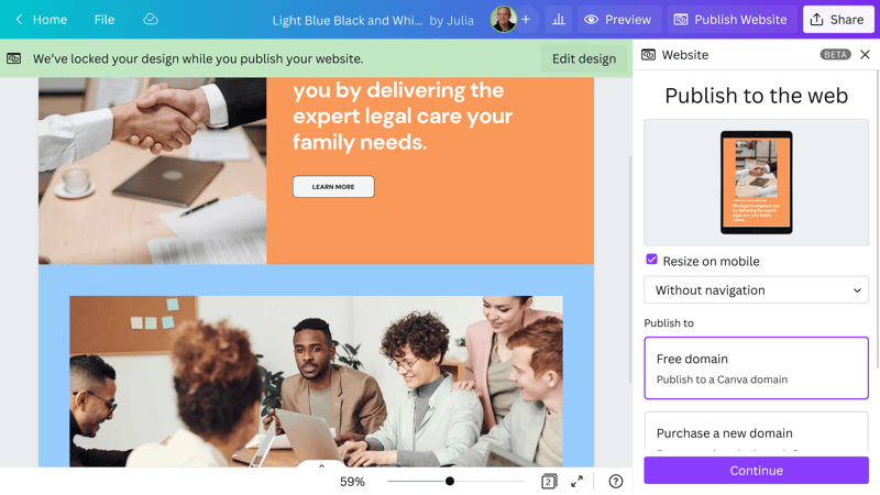 Although it's still undergoing beta testing, Canva may soon offer users the ability to design their own websites. Once finished, you'll be able to link these to your existing domain, use a free one provided by Canva, or order a new Web address.