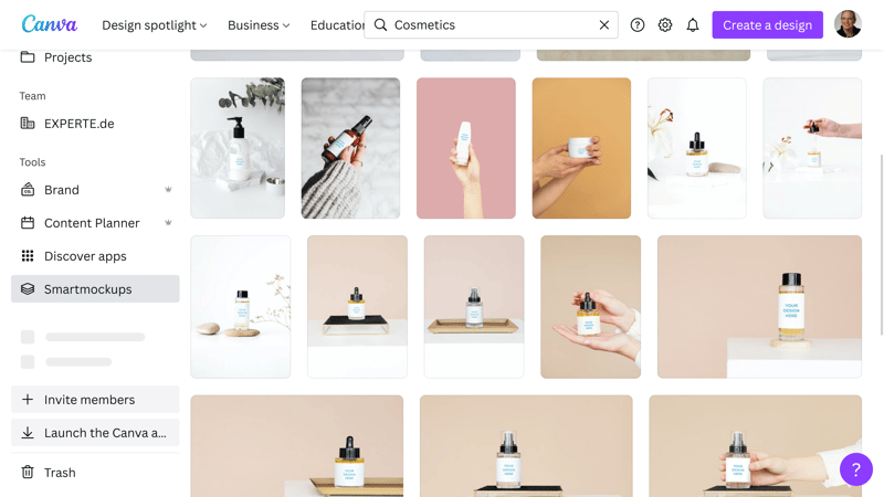 The mockups we mentioned above get their own section on Canva. Think of these as virtual prototypes for your product designs: They'll allow you to see how effective your designs are, whether for ingredient labels or posters.