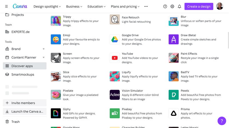 Clicking on Discover Apps reveals even more features, ranging from the ability to create QR codes to various photo filters, to icon collections. In order to experience all that Canva has to offer, you'll need to set aside a bit of time.