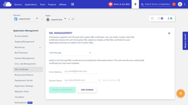 Every Cloudways subscription includes a free SSL certificate from Let's Encrypt.