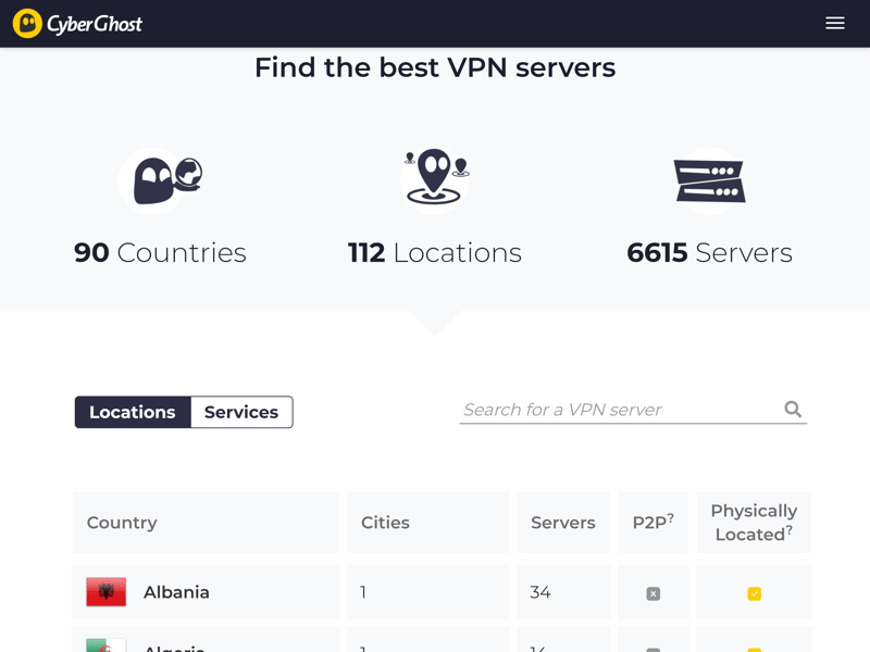 CyberGhost possesses more than 6,600 servers across upwards of 90 countries. Most of these are located in North America and Europe, with the US and Germany well-served. The provider's global network is impressive, particularly considering its efforts in Asia and Africa, even though large parts of the latter continue to lack coverage.