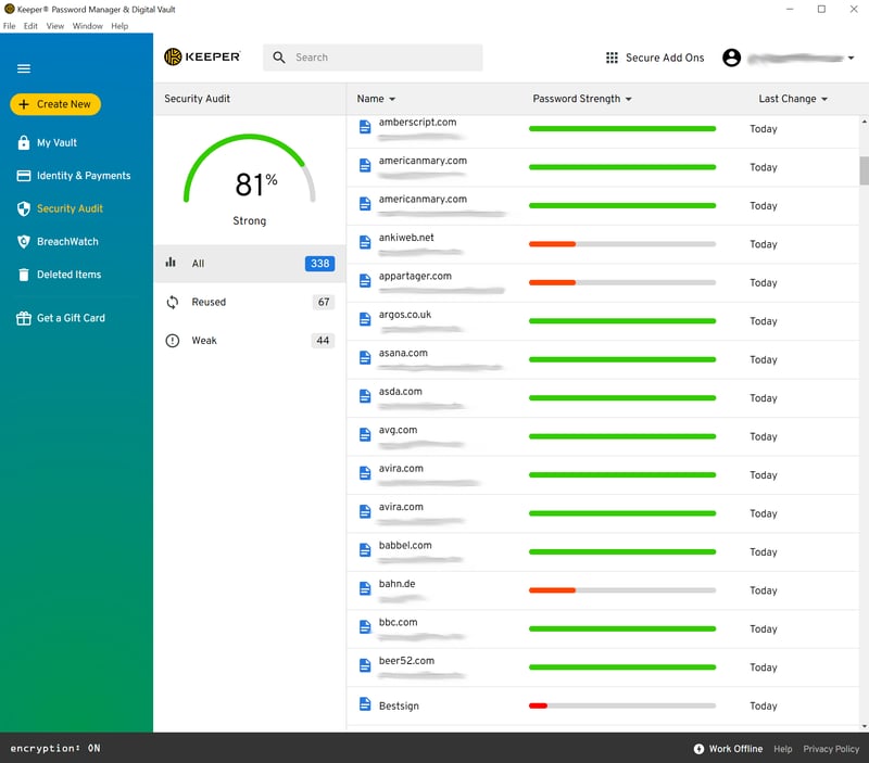 In Keeper's Security Audit screen, you can stay on top of your files and logins.