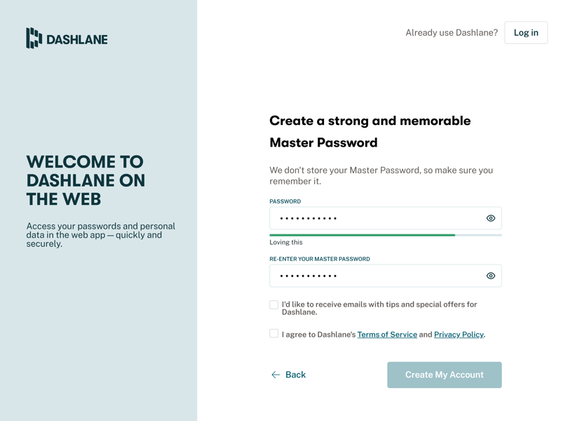 Dashlane's web app is well-designed and structured.