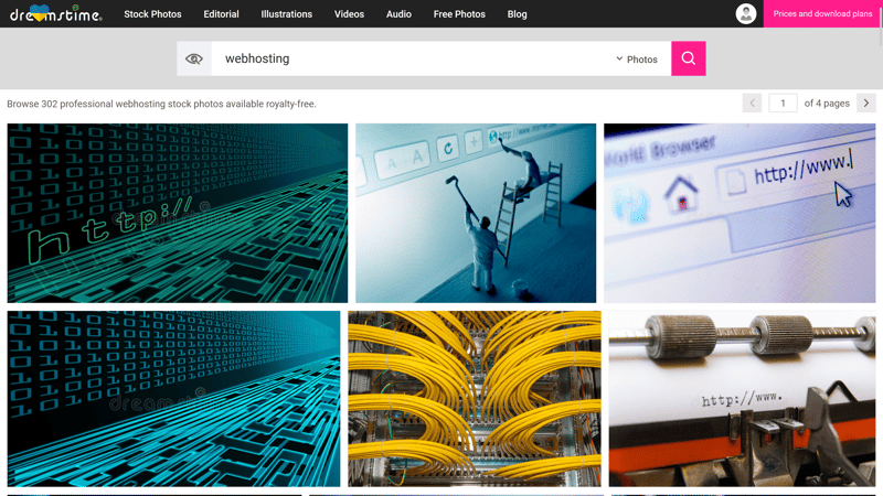 Dreamstime provides almost 10,000 results when searching for web hosting, most of which have something to do with the Internet.