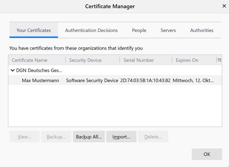If completed successfully, the imported certificate will be displayed. Next, click OK.