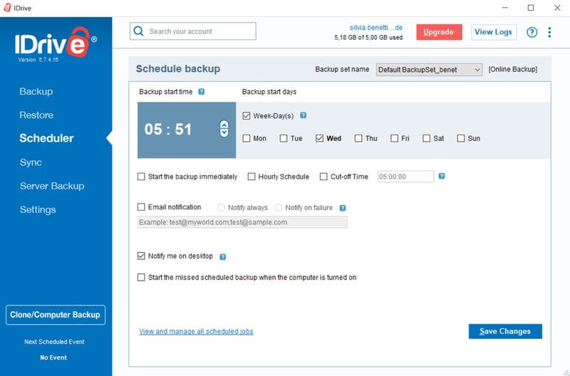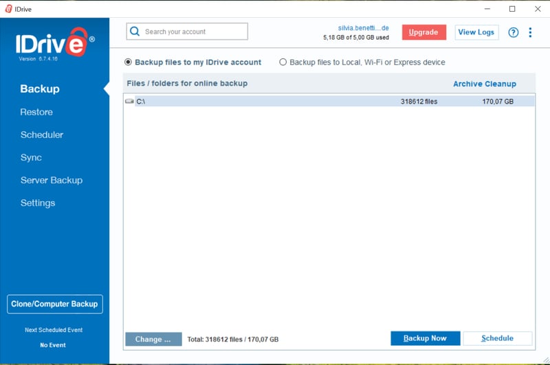 Ideally, data backups should not consume too many resources and take as little time as possible. IDrive did not do great in either area: Uploading a 1 GB test folder took around a minute while downloading it from the Cloud took three times as long (download speed: 50 MB/s, upload speed: 40 MB/s).