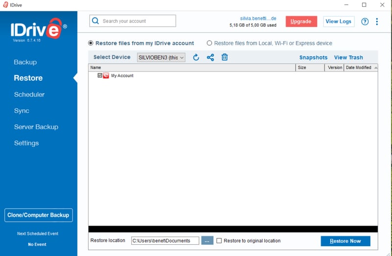 During testing, file recovery went as smoothly as backing up. Simply click on the Restore button, put a checkmark next to those files which you'd like to download, and click on Restore Now.