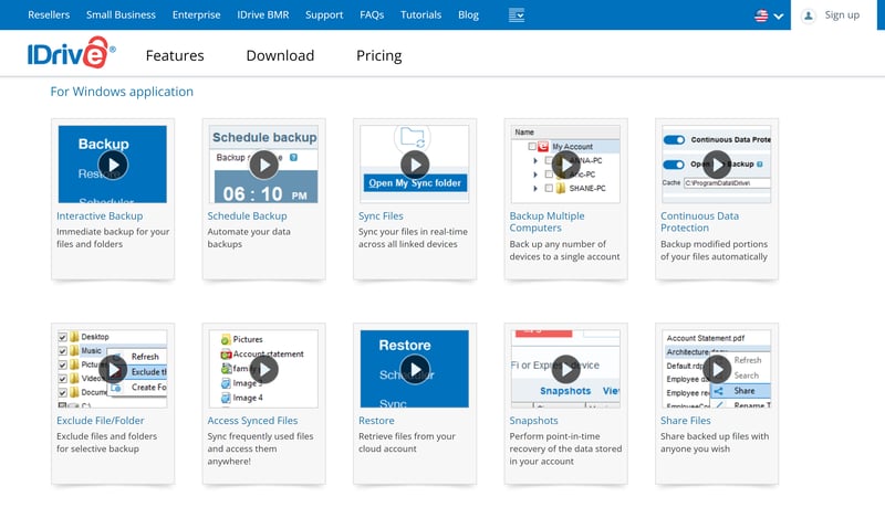 The video tutorials offer comprehensive and clear walkthroughs for all of IDrive's main features.