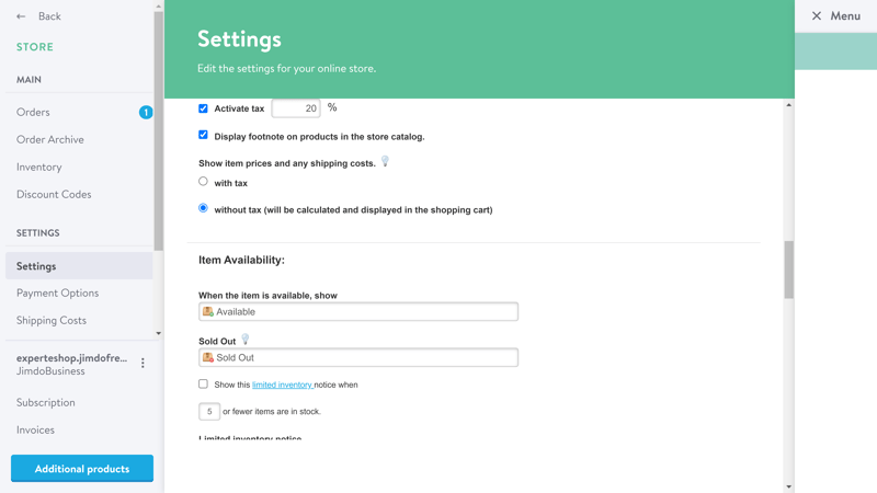 In Jimdo Creator, settings are again more extensive: You can specify delivery costs for continents, regions, or even countries, which are linked to the product's weight or its tags. It's also possible to offer free delivery after a certain order total has been reached, a feature that Jimdo Dolpin lacks.