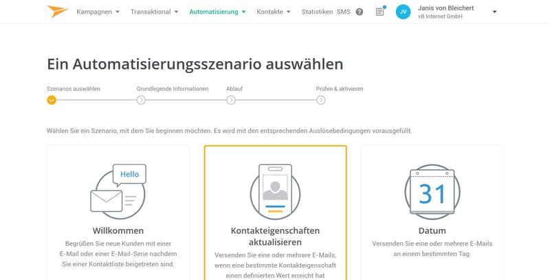 Once you've created or imported a contact list, you can divert all of your attention to starting your email campaign. In Mailjet, such campaigns can be manual or automated. Further, the service also offers the ability to send transactional emails. Automations, such as welcome messages for new newsletter recipients, are only available in the "Premium" and "Enterprise" subscriptions.