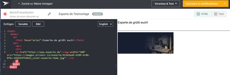 Mailjet's advanced HTML editor.