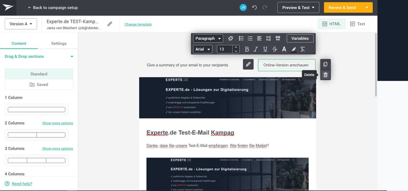All basic functions for personalizing emails are available, and it is also possible to preview your messages. Rendered previews in different email clients are limited to "Enterprise" subscribers. This increases the risk of emails not being displayed properly when viewed by their recipients. During testing, our personalized templates were displayed correctly among a number of different providers.
