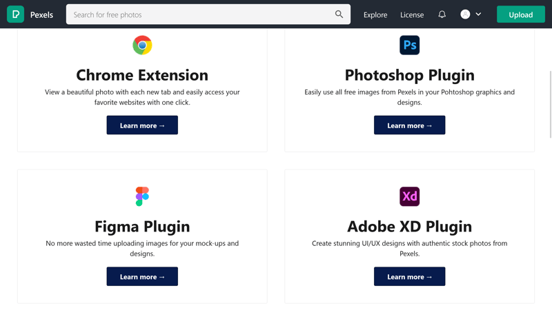 Pexels is compatible with a number of apps thanks to its plugins for platforms like WordPress.