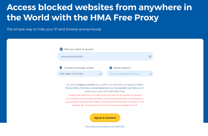 In case navigating to the web proxy's website each time you want a proxy connection doesn't sound appealing to you, a browser extension might be worth considering. For example, HideMyAss offers just such a tool at no cost. At its core, this is a basic web proxy solution that differs from the above method only in negating the need to visit the service's website.