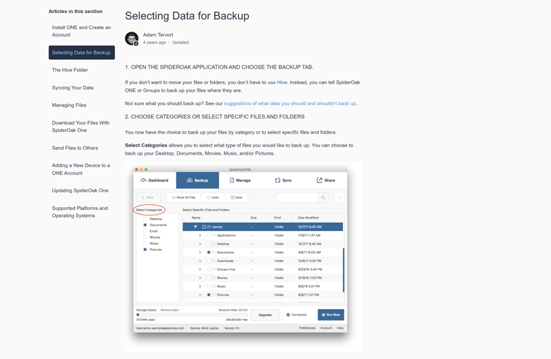 SpiderOak's well-structured articles and guides offer plenty of information about a range of different topics.