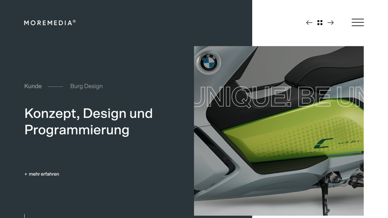 Here too, it's important to remember that colors can guide users through a website and that elements are easily remembered and used as frames of reference. Should your website be too minimalistic, a user might get lost, be unable to find what they're looking for, and/or become bored. To avoid this, it can be helpful to combine multiple trends to take virtual visitors on a guided tour through your portfolio or catalog.