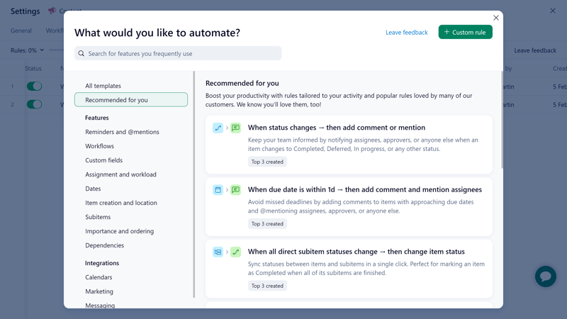 You can customize your tasks extensively and organize them with subtasks, dependencies, and milestones.Straightforward automations